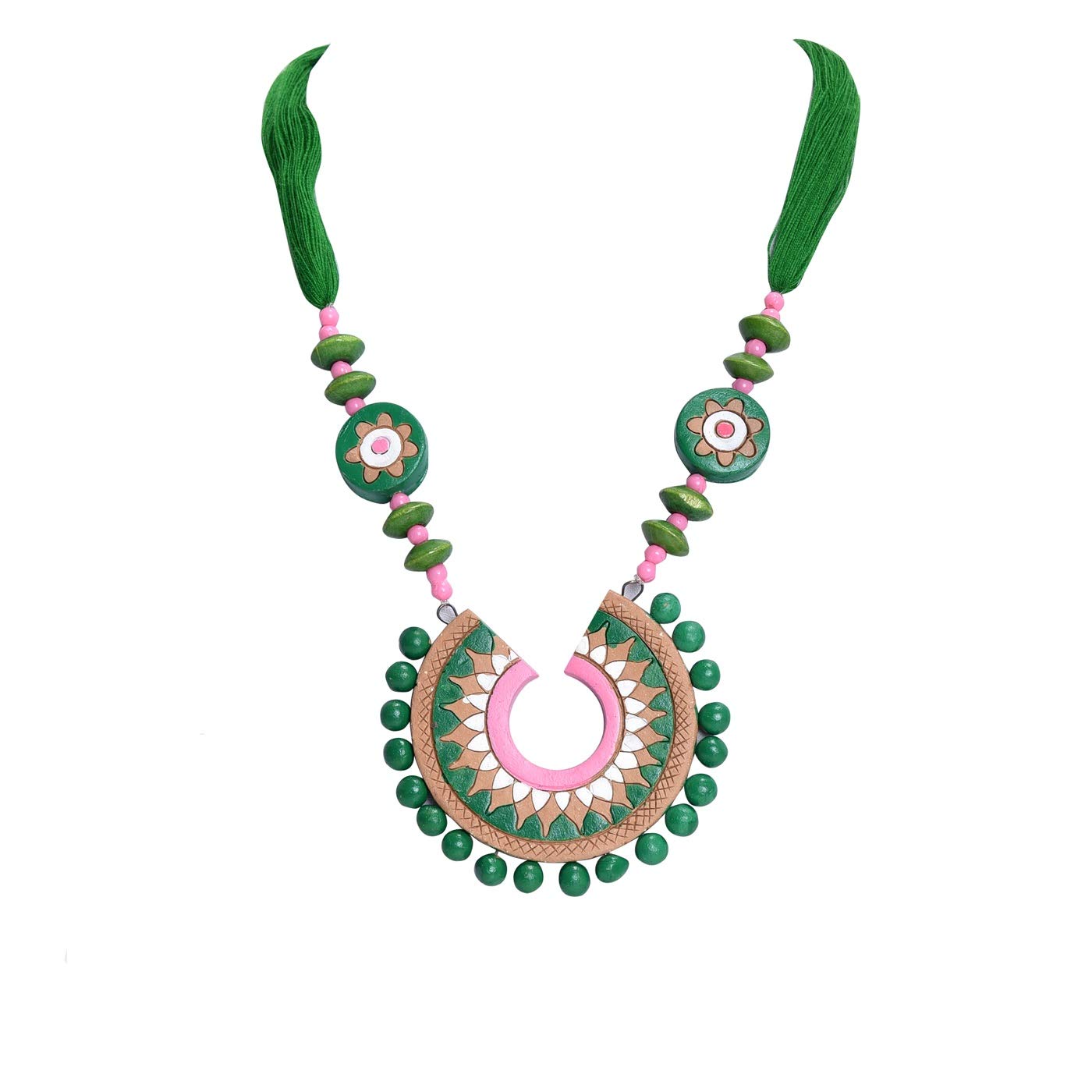 The product in display is made from terracotta material and is finished in an attractive black color. Furthermore this product features a strand shape and a design that renders it with the versatility to be worn as a festive occasion wear.