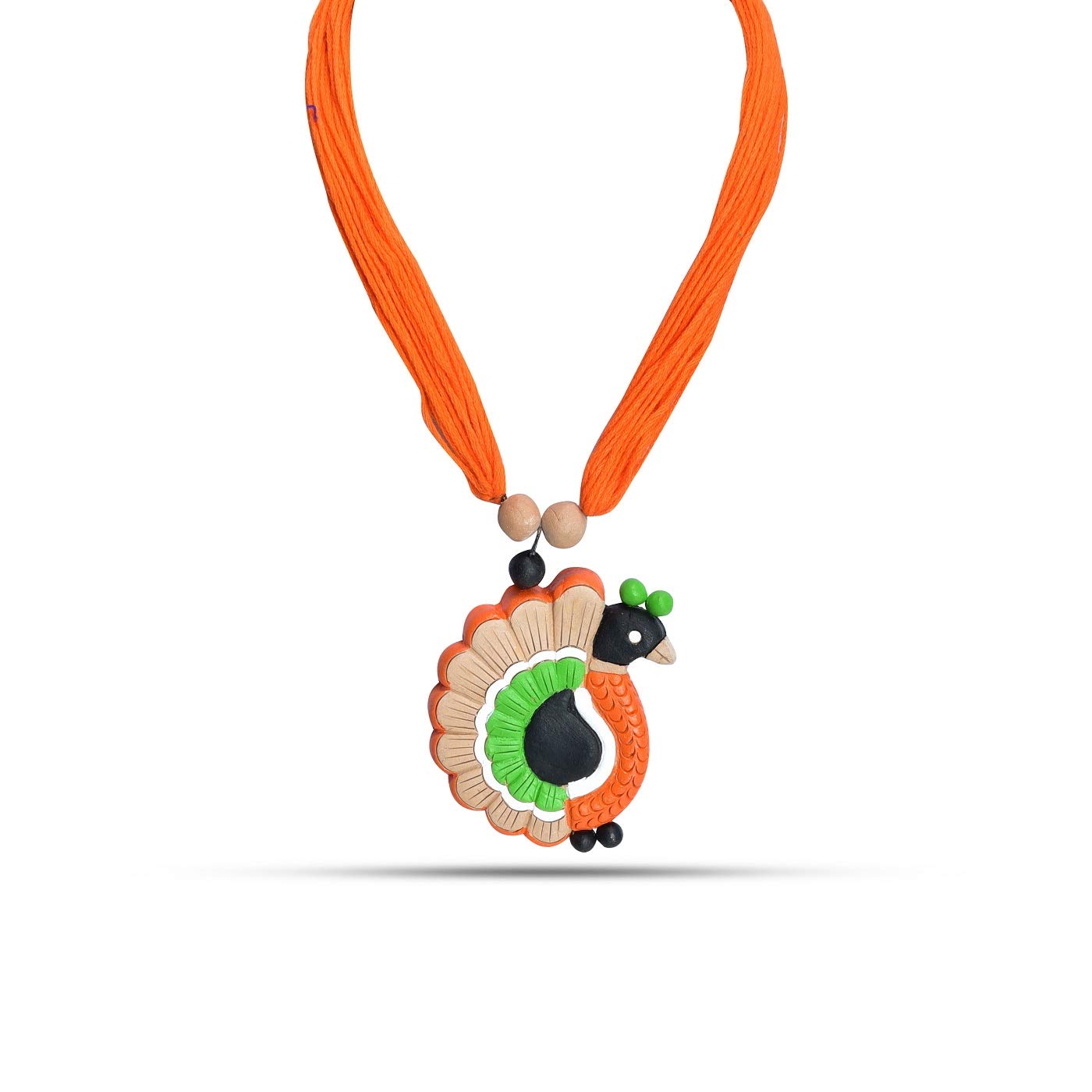 The product in display is made from terracotta material and is finished in an attractive orange color. Furthermore this product features a strand shape and a design that renders it with the versatility to be worn as a festive occasion wear.