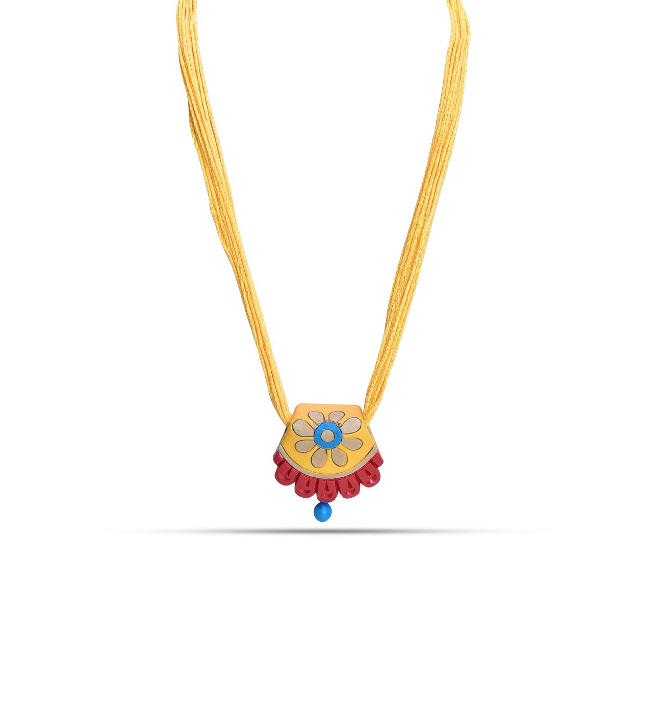 The product in display is made from terracotta material and is finished in an attractive Yellow color. Furthermore this product features a strand shape and a design that renders it with the versatility to be worn as a festive occasion wear.