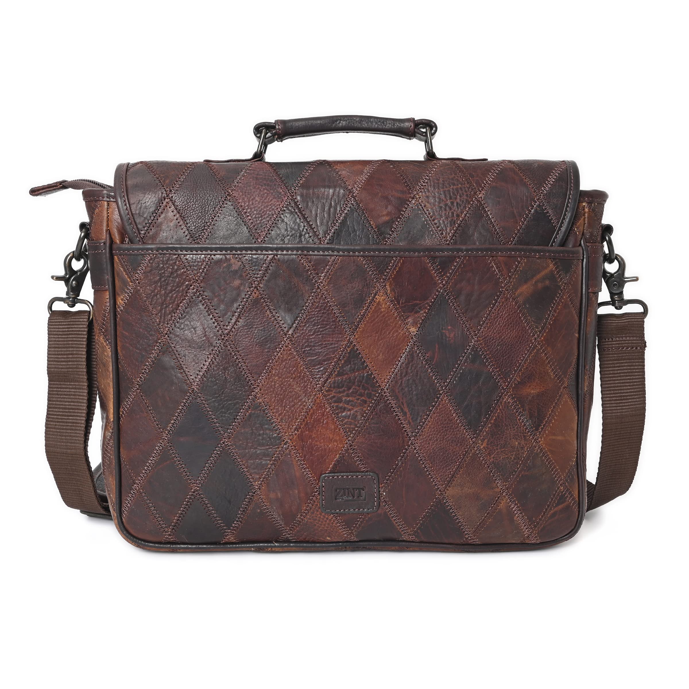 This is a handmade brown coloured Portfolio / Office Bag / Laptop Bag / Travel Bag made from 100% genuine shrunken full grain leather. Features of the bag: It closes fully with a zipper on top & a flap-over with buckles. It is quite spacious with multiple compartments. Inside the bag there are two large open compartments & one large zipper compartment to carry all your office essentials like files folders documents etc. & a padded laptop compartment that is fastened with a small velcro flap. There is also a small zipper pocket inside & a zipper compartment in front. An open pocket at the back of the bag gives you extra storage & is handy. This bag is suitable for formal business meetings casual outings or college classes. It is also suitable for a weekend getaway as it can accommodate a set of clothes. The bag can be carried in hand or over your shoulder using the comfortable adjustable detachable shoulder strap. Dimensions: Length : 15.3 inches Width (at base): 3.5 inches Height: 11.4 inches