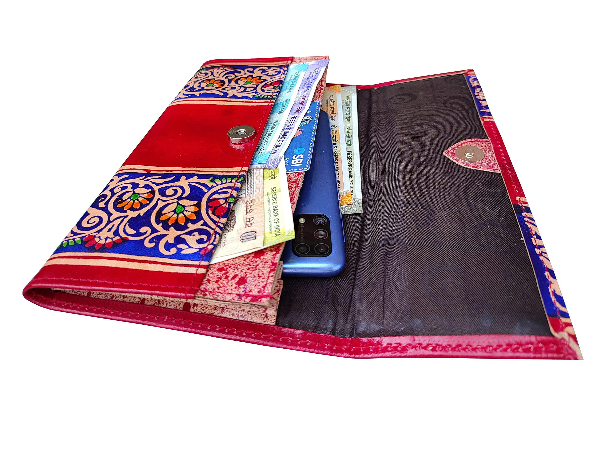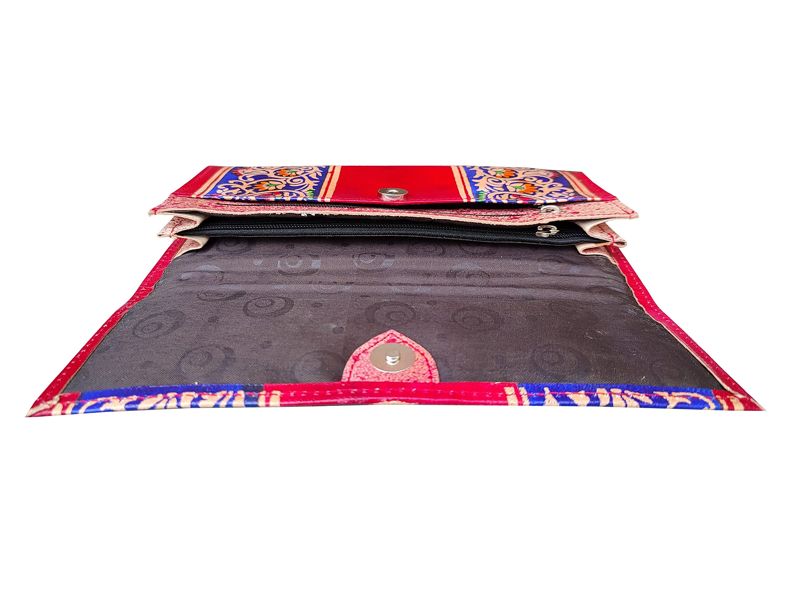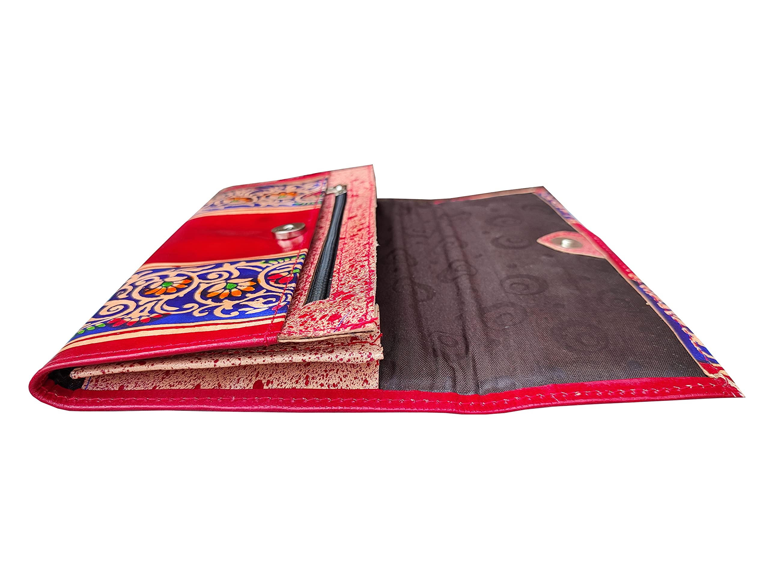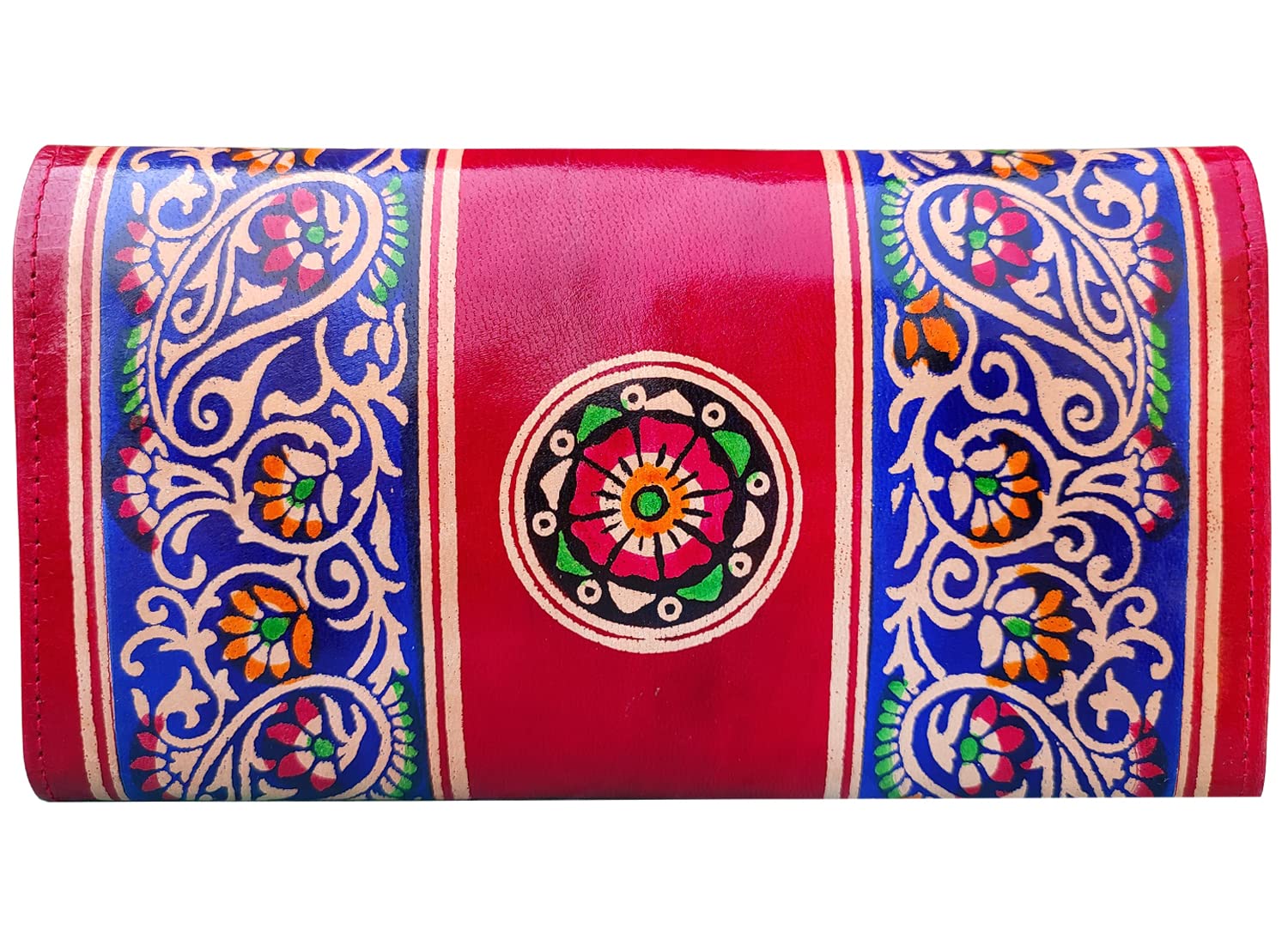 Handcrafted from Genuine Leather a Beautiful Ethnic Art of West Bengal. Design on both sides Multiple Compartments Closure: Zip and Magnetic button. This purse is a classic example of age old Shantiniketan craft which was introduced in West Bengal India during the 1940s. The Shantiniketan style evolved as a result of the Art Movement and these products have now become world famous for their applique batik and embossed craft work. The process of burnishing the leather gives it an elegant sheen and brings out the colors. The major embossing craft is done by hand and is an intricate process. After the final leather made it is then stitched into the desired product coated with a lacquer finish for making the product shiny and long lasting. We are happy for your interest SHANTINIKETAN EMBOSSED LEATHER PRODUCTS and artist of Shantinikan thanks to you.