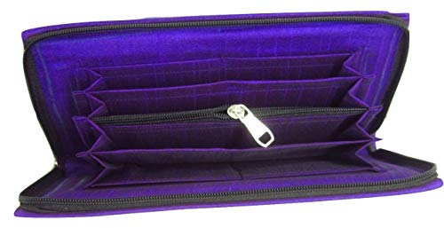 TRADITIONAL LEATHER CLUTCH - Pure Leather and Raw Silk Kutchhi Handicraft Large Multi Pocket