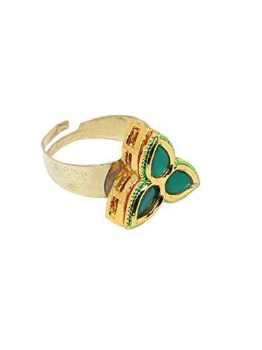 Ruby Raang Women's Mixed Metal Artificial Kundan Rings - Traditional Jewellery Set for Women (White)