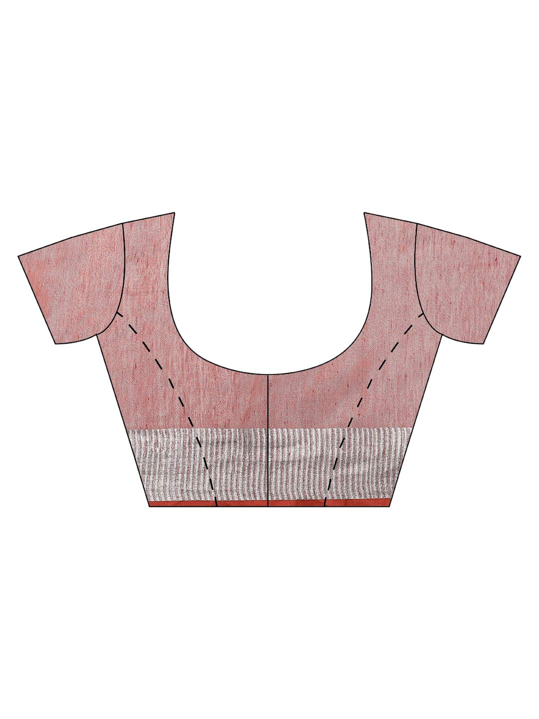 A delicate blend of glowing tissue and textured linen fabric. The sari has a fine zari inclusions making apparel stand out. A timeless hand crafted piece to give you a chic and classy style statement.