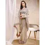 Beige Color Space Silk Fabric Ethnic Embroidered Partywear Saree