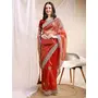 Orange Color Banarasi Crush Fabric Ethnic Embroidered Partywear Saree
