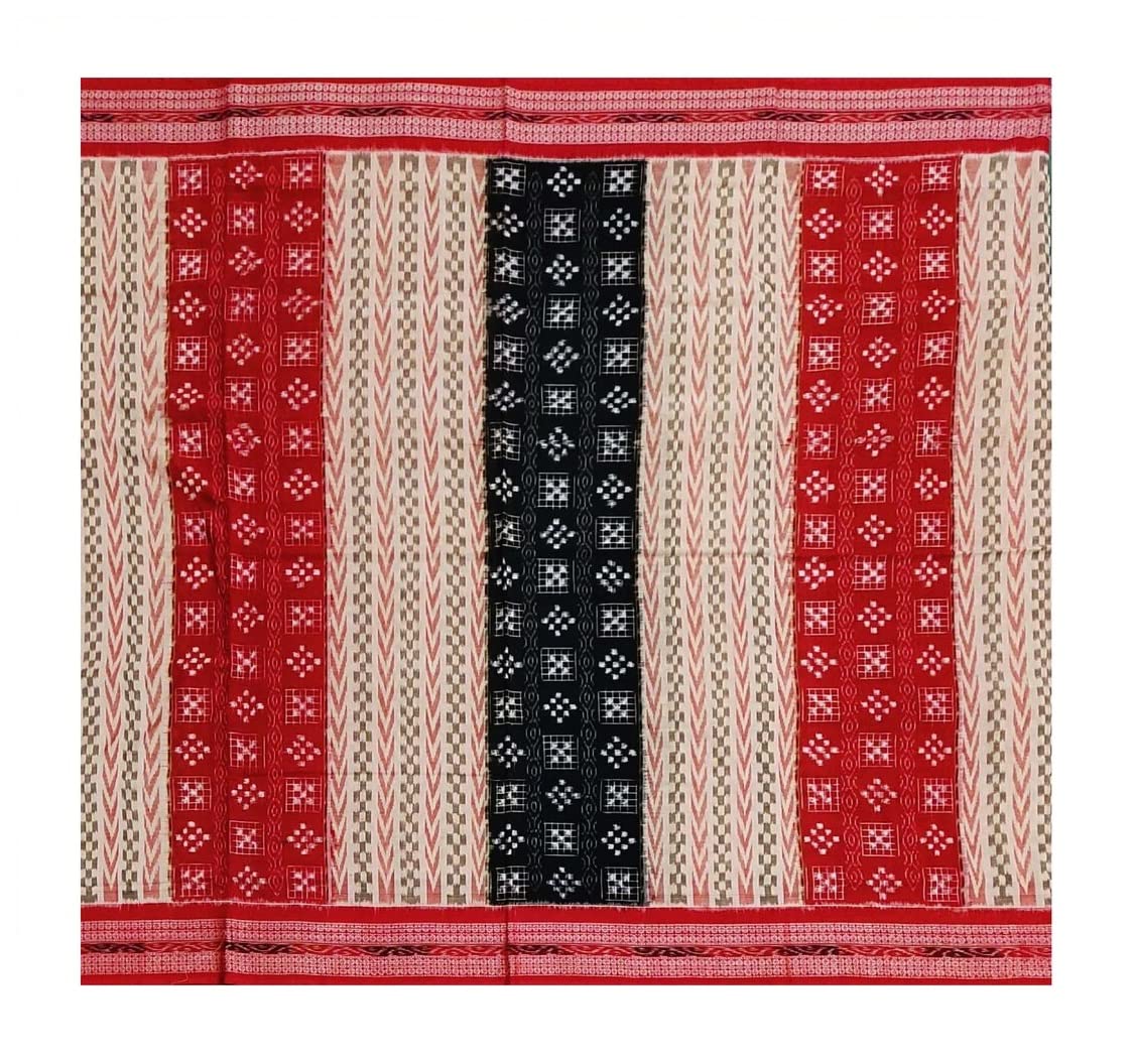 SAMBALPURI BANDHA CRAFT Sambalpuri cotton saree(Pasapalli design with red black and light peach colors combination)