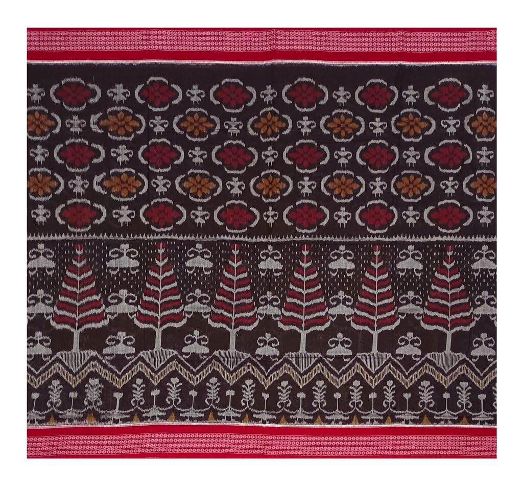 SAMBALPURI BANDHA CRAFT Sambalpuri cotton saree with blouse piece(Flower and terracota art design in coffee color base)