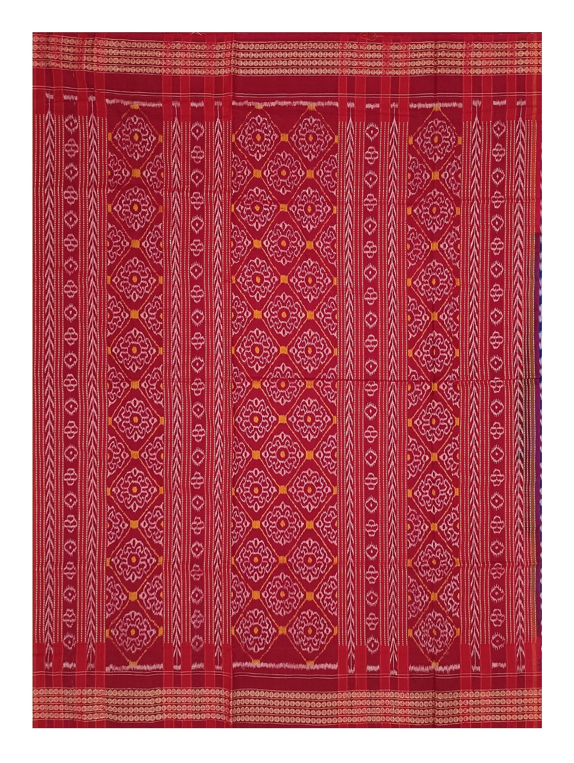SAMBALPURI BANDHA CRAFT sambalpuri cotton saree with blouse piece(flower design in blue color base)