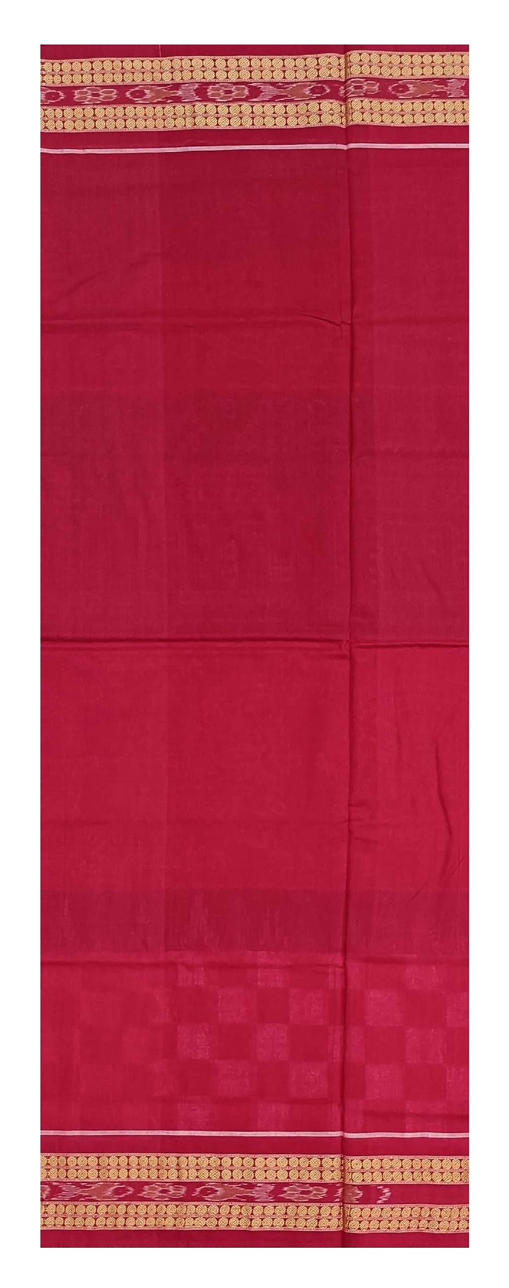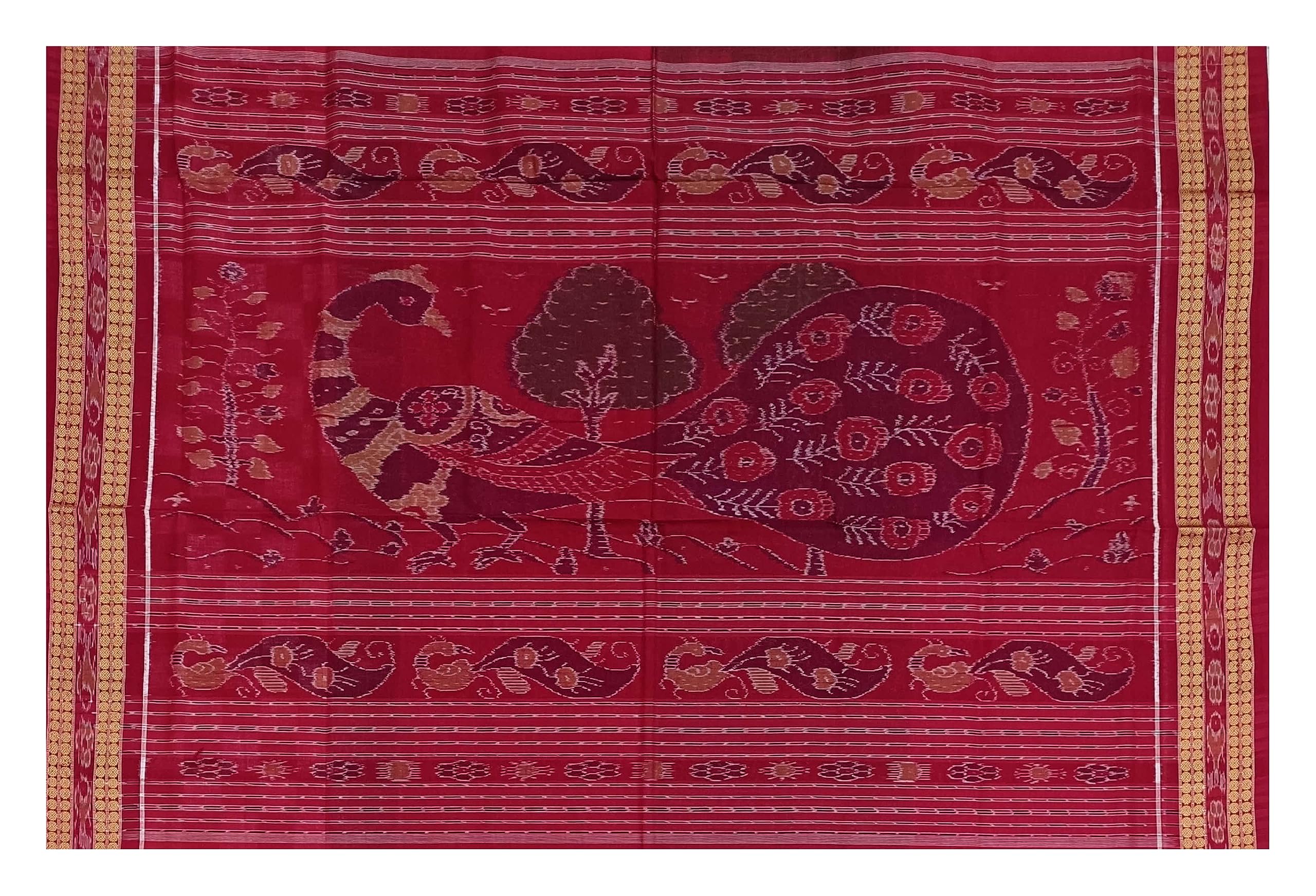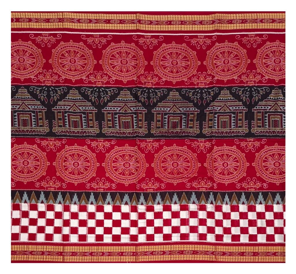 SAMBALPURI BANDHA CRAFT Sambalpuri cotton saree with blouse piece(Pasapali Konark temple and wheel design in red coffeeand white colors combination)