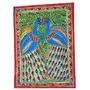 A traditional multi coloured Madhubani painting depicting a peacock couple as a symbol of serenity and peaceful coexistence as perceived by the artist. Only hand made paper cured with cow dung is utilized and is a signature livelihood of the painters of Madhubani, Bihar, India.