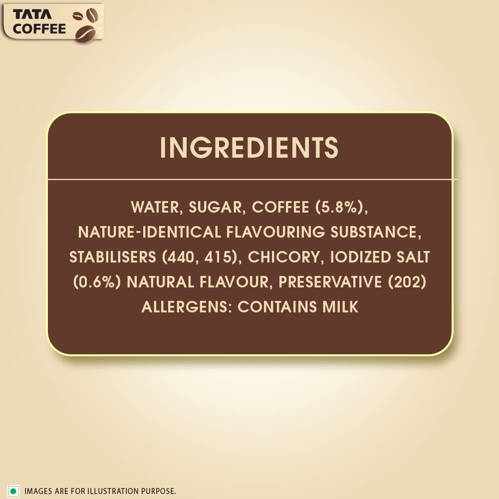 Tata Coffee brings to you a first-of-its-kind Cold Coffee Liquid Concentrate Range specially designed to make cafe-style delicious cold coffee that is so rich & creamy yet easy to make! Now you can enjoy a cafe-style coffee experience with Tata Cold Coffee Salted Caramel. It's everything you love about cold coffee. Explore the irresistible range of flavors Classic & Choco Mocha. USAGE INSTRUCTIONS: Make it in 3 easy steps. Cut sachet and squeeze out all the liquid into the cup. Add 200ml (1 cup) chilled milk (add sugar as needed). Stir to mix. STORAGE INSTRUCTIONS: No Shaker/Blender is required. Don't consume if the packet is puffed/leaky. Once opened consume fully.