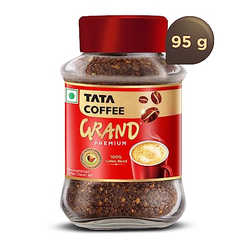 Tata Coffee Grand Premium Instant Coffee | 100% Coffee Blend | With Flavour Locked Decoction Crystals |95g Jar PowderTata Coffee Grand Premium - Unlock the freshness! To offer you a memorable taste experience Tata Coffee brings you Grand Premium instant coffee powder which leverages the deep heritage of Tata Coffee and delivers an intensely rich aroma and great taste of coffee. So give a fresh start to your mornings with a sip of your favourite coffee and be ready for an adventurous ride all day long. With 100% coffee blend and flavour-locked instant decoction crystals this Tata Coffee flavoured soluble coffee powder is roasted and processed to perfection to give you the choicest coffee every day. Usage: Add 1 teaspoon of Tata Coffee Grand Premium into a cup. Add 100 ml of hot milk and/or water. Add sugar to taste stir well to enjoy a great cup. Storage Instructions: Close the lid tightly after every use. Always use a dry spoon.Tata Coffee Grand Classic Instant Coffee | Strong Taste & Rich Aroma | With Flavour Locked Decoction Crystals | 95g JarThe story of experience and legacy of Tata Coffees lush coffee estates high up in the mountains of southern India where the biodiversity is preserved and enhanced. Where the high quality Arabica and Robusta beans are cultivated picked pulped and dried with the utmost precision and care by our experts. Decades of experience in producing high quality coffee using technologies and techniques perfected by Tata Coffees in-house lab; ensures consistency of taste and aroma. Tata Coffee Grand leverages the deep heritage of Tata in coffee and has created a product that is a first of its kind innovative offering in the Indian market. The product is a blend of the finest coffee powder & flavor locked decoction crystals which gives consumers a best in class taste experience in the instant coffee category. Tata Coffee grand is an intensely rich fresh and aromatic coffee. Usage: Add 1 teaspoon of Tata Coffee Grand into a cup. Add 100 ml of hot milk and/or water. Add sugar to taste stir well to enjoy a great cup.