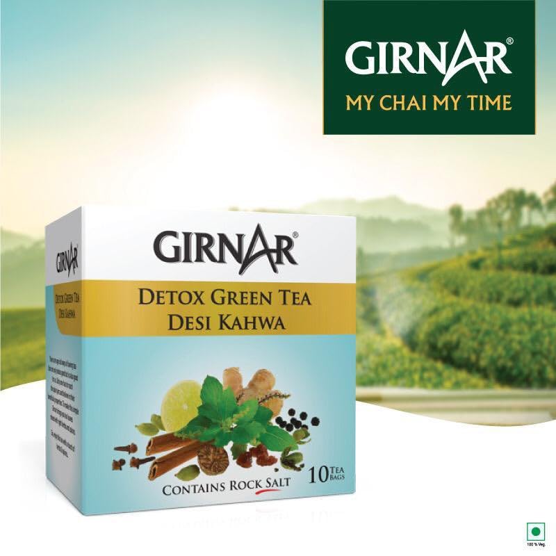 Girnar Green Tea Desi Kahwa (Detox Tea) - 36 Tea Bags X 2 Packs