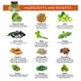 • 20 HERBS : Turmeric. Gilloy Vijaysar Chaal ( Indian Kino Bark) Fenugreek Seeds Amla Jamun seeds Arjun Bark Gudmar Brahmi Moringa Gokhru Shatavari Fennel Cardamom. Cinnamon. Ginger. LongPepper (Pippli) Liquorice
