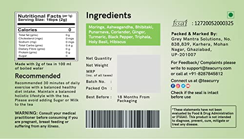 Moringa Ashwagandha Bhibitaki Punarnava Coriander Ginger Turmeric Black Pepper Triphala Holy Basil and Hibiscus