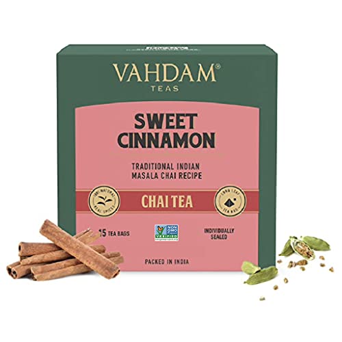VAHDAM Sweet Cinnamon Masala Chai Tea Bags (15 Count) Non-GMO Gluten-Free No Added Flavoring | Blended w/Exotic Spices | Individually Wrapped Pyramid Tea Bags | Direct from Source