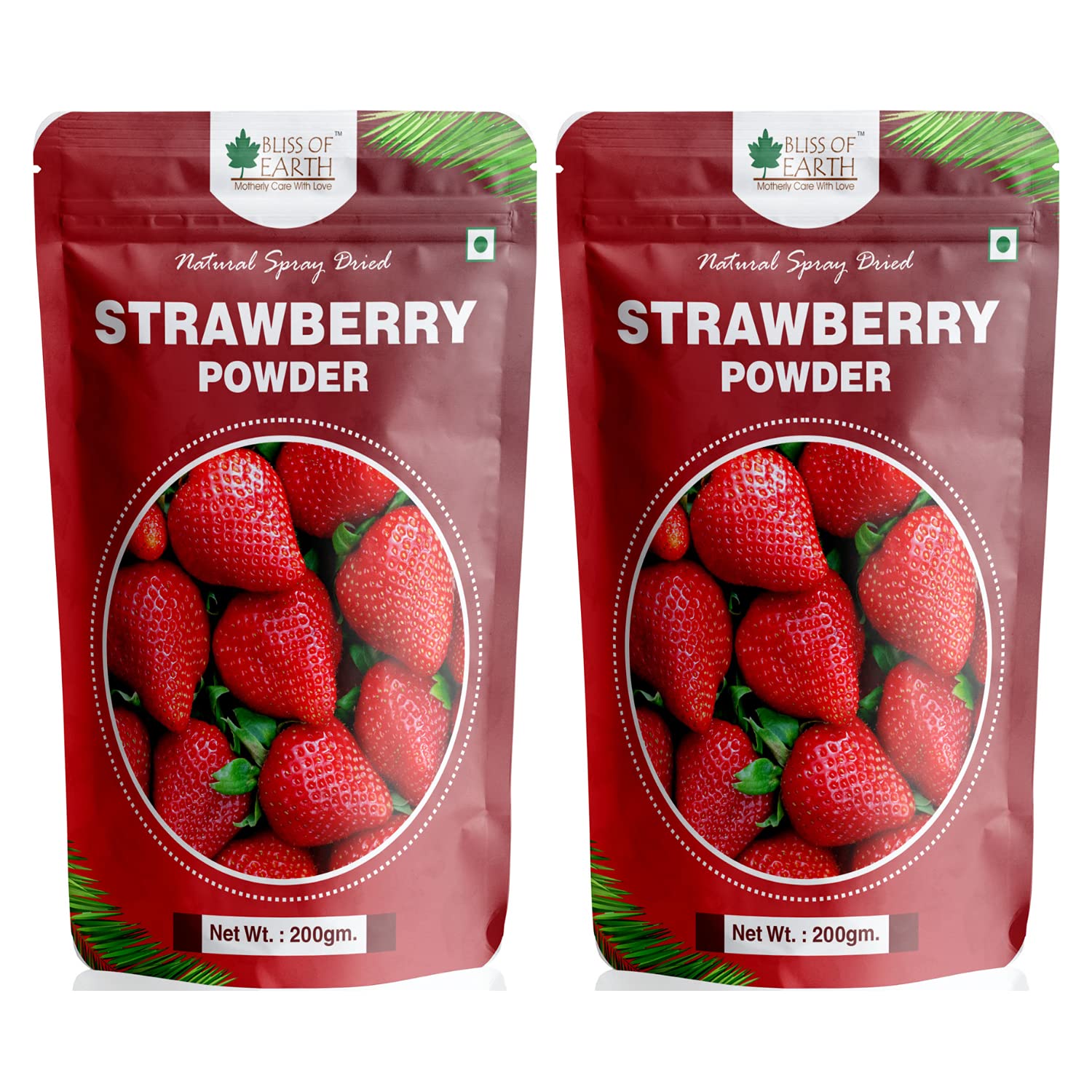 Bliss of Earth Strawberry Powder 400gm For Milk Milkshake Cake Kids Loving Natural Spray Dried 2X200gm