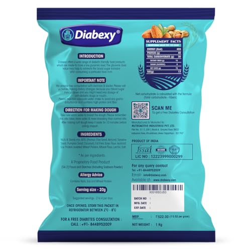 Diabexy is a diabetic food product brand which provides Low Glycemic load food products for diabetic persons. Glycemic load of a food item is an important nutritional parameter because it suggest that how much quantity of a food item will lead to how much increase in blood sugar level. We can mathematically calculated and estimate the glycemic load of a food product. 1 glycemic load is equal to 1gram glucose and 1gram glucose will increase blood sugar by 20 points. Estimated Glycemic load of wheat flour is 50 per 100g which means it will increase blood sugar by 1000 points. Estimated Glycemic load of Diabexy Atta is just 7 which means it will increase blood sugar level by just 140 points. It means that Diabexy Atta is having 85% less impact on blood sugar level than normal wheat atta. One must control his daily dietary glycemic load to manage diabetes. Every bite of food is important for managing blood sugar level for a diabetic person. Flour is one of the main dietary ingredient in our daily life; just by changing your flour you can reduce your daily dietary glycemic load by more than 50%. Diabexy Sugar Control Atta is a Low Glycemic Load atta especially designed for a diabetic person. You can make lot of recipes using this Diabetic flour like chapatti parantha ajwain poori pan cake halwa laddoo etc. Our mission at Diabexy is to help people to live a diabetes free life. It took us more than 10 years of research and development to develop Low Glycemic Load food products. We believe that it is possible to reverse diabetes with the help of healthy eating habits and disciplined lifestyle.