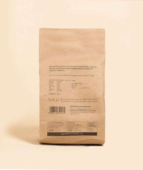 Traditionally a part of the diet in South India, ragi flour is a rich source of fibre, calcium and iron for your body. And, Isha Lifes ragi flour is milled using sprouted ragi seeds, which amplify its nutrition value greatly. Having ragi in its sprouted form is known to increase iron and calcium absorption, which plays a role in preventing anaemia and calcium deficiency. Rightly called the superfood in modern times, this -free grain is easy for your body to absorb and digest. What's more, Isha Lifes sprouted ragi flour is a 100% natural product; it does not contain any added or artificial flavouring.