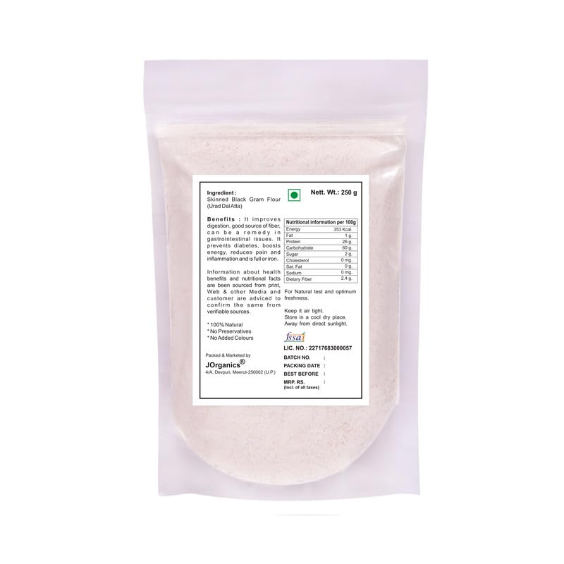 JOrganics Urad Dal Atta Black Gram Flour | Little Millet Flour | Urad dal k Atta | (250 Grams)