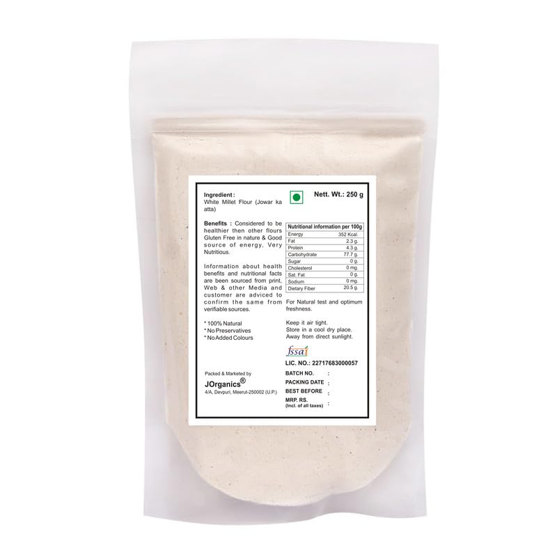 White Millet Flour Is Also A Very Good Source Of Nutrients Vitamins Menerals And Organic Compounds That Can Boost Human Health In Many Ways.Organic free from chemicals and pesticidesThis is a Vegetarian product.Millet Bajra Grains [Grown in Kutch Gluten-free Rich in Fiber] Rich in fiber proteins and essential minerals and is a healthy gluten-free alternative to wheat.Ground to flour and combine with wheat jowar flour to make theplas bhakri and other breads Grind and Stuff with fillings to make parathas - Simply Good Food!Health Benefits :- High in ProteinHigh in fiberRelieves ConstipationPromotes weight loss*24x7 service available