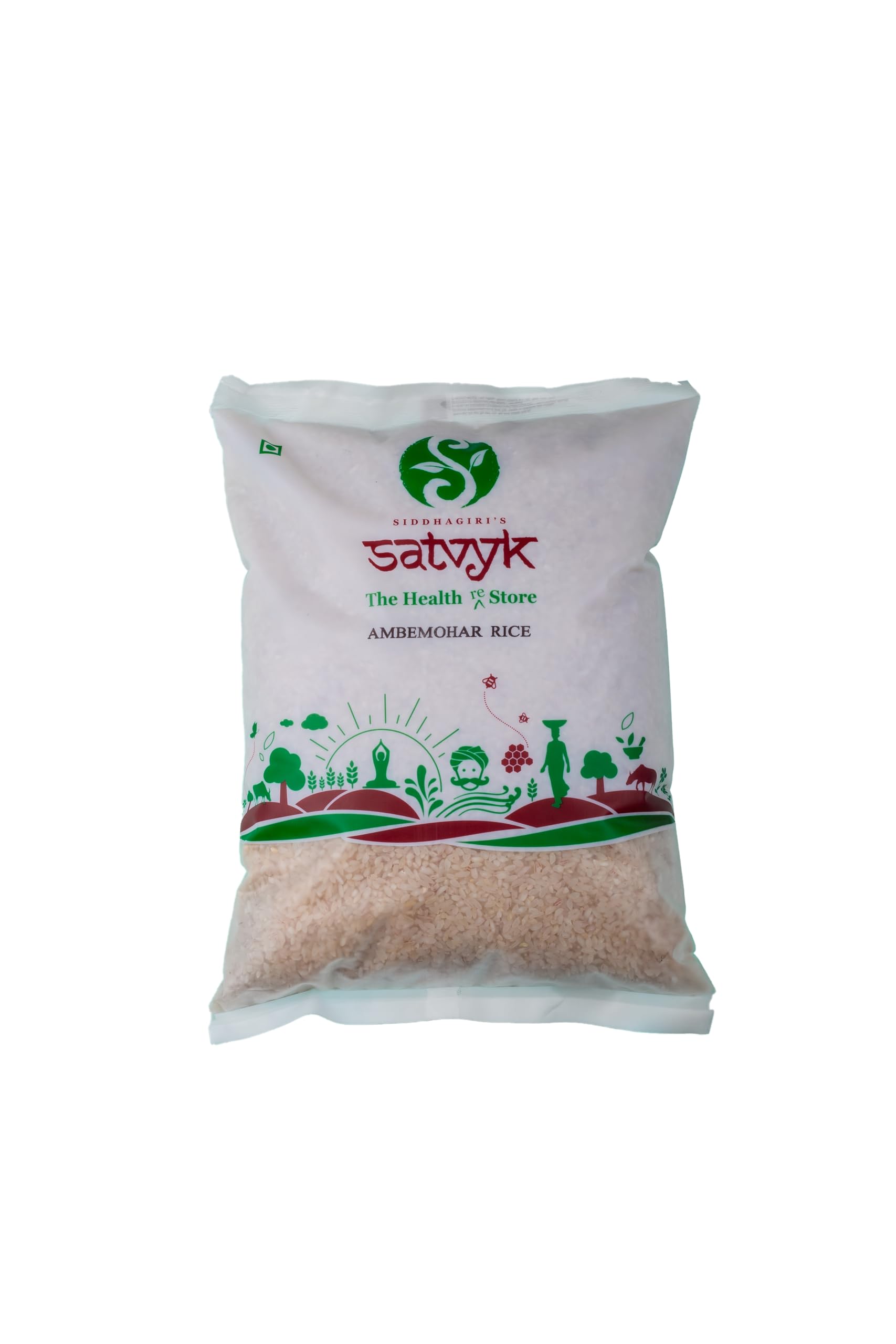 Ambemohar short grain of rice grown popularly in state of Maharashtra is known for its quick-cooking properties. Wonderfully versatile and flavorsome Ambemohar rice is filled with nutrients energy and essential vitamins. Before this bundle of Happiness is delivered at your door-steps Satvyk ensures: *Indigenous and Local Rice Plantations! Rice is grown naturally using Indigenous variety of Plants in various rural farms of South-India.