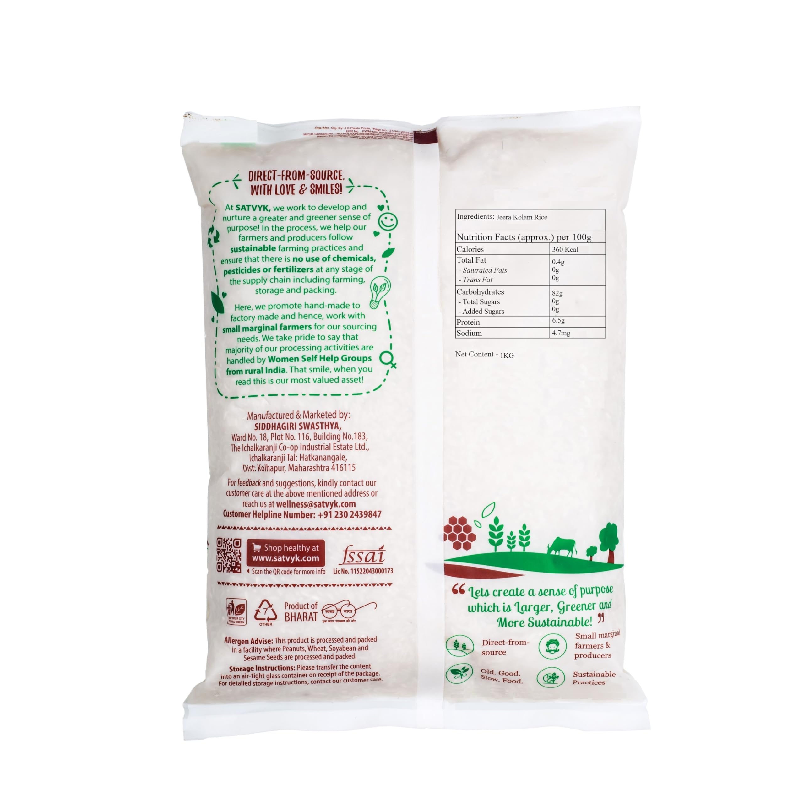 S Siddhagiri's SATVYK THE HEALTH re STORE Organic Jeera Rice (1kg) - Handpounded | Unpolished Jeera Kolam Rice | Kolam Rice Loose | Traditionally Milled | Organic Aged Rice