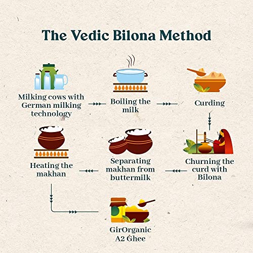 GirOrganic A2 Pure Ghee | 100% Desi Gir Cow | Vedic Bilona Method | 1 Lit Glass Bottle | Grassfed Cultured Premium & Traditional Ghee | Immunity Booster