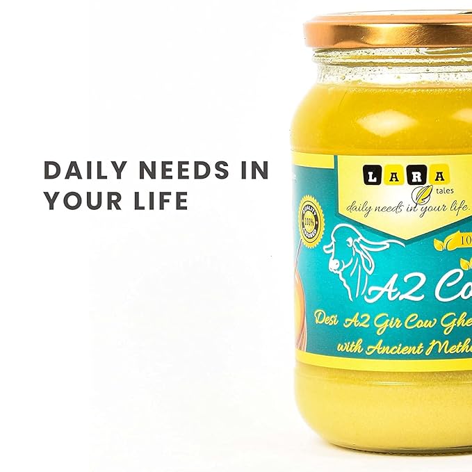 The A2- Grade Milk that is used to extract this milk ghee is known to be one of the healthiest cow milk to have ever existed. Such grade milk is found in the Gir cows and is turned into ghee using the Bilona method of churning. With the right sentiment of feeding the calves first, the milk is then collected from the cows and put to boil in earthen pots. After boiling the milk on wood and fire, it is left outside overnight for it to curdle. The curdled milk is then churned which separates the buttermilk. The bilona method ghee then generates 100% A2 Gir Cow Ghee often known as Bilona Ghee or Bilona Method Ghee.