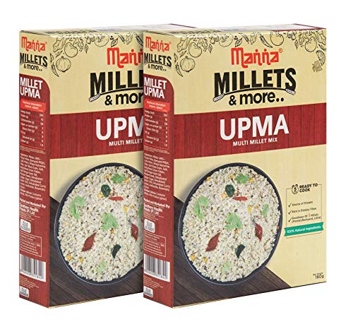 Manna Ready To Cook Millet Upma Pack Of 2 (180G Each) 100% Natural Ingredients No Preservativese No Artificial Flavours Colours