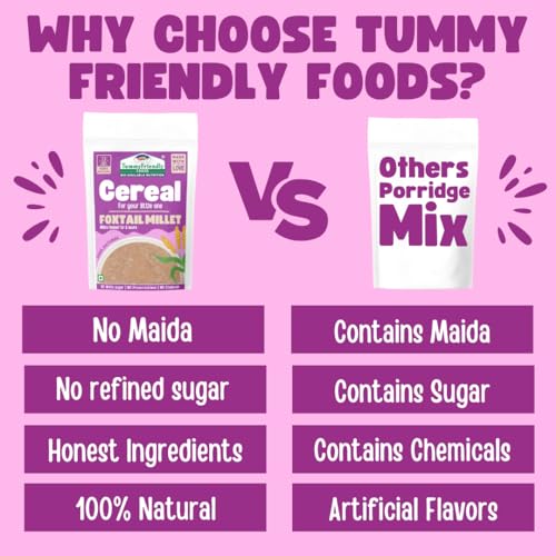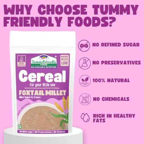 TummyFriendly Foods Foxtail Millet Cereal for baby Toddler kids 2 year old | Baby food for 2+ year old | Maximum Nutrition From Real Food. Available in Trial Baby Packs too. 100g. Introducing our Organic Multi Grain Health Mix Powder - the ultimate health drink for kids! Crafted with care and packed with goodness this nutritious blend is specially formulated to provide essential nutrients for growing children. Say goodbye to sugar worries! Our health drink for kids without sugar offers a healthy option for parents seeking wholesome alternatives. Made with natural ingredients it's a deliciously healthy choice that kids will love. Created with the well-being of children in mind our health mix for kids is homemade with love. We understand the importance of nourishing your little ones with the best which is why our blend is free from artificial additives and preservatives. Suitable for ages 2-6 years our health mix for kids malt is designed to support their growth and development. With a rich combination of grains it's a powerhouse of nutrients that helps fuel their active lifestyles. Looking for a Healthy Milk Mix powder for kids? Look no further! Our Health mix for kids is the perfect solution. Packed with vitamins and minerals it's an easy and convenient way to ensure your child gets their daily dose of goodness. Make the switch to our Organic Multi Grain Health Mix Powder today and give your kids the gift of health and vitality. With every sip they'll be nourished energized and ready to take on the world!