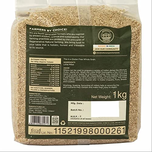 Little Millet is a Native Variety of millet also named as Sabut Kutki / Sawa / Samai Millets can be used to prepare a variety of Indian dishes like Khichadi Pulav Upma etc. Wash the Little Millet thoroughly a few times and leave to soak in water for 4-8 hours. Further they could be sprouted or used directly to make Idli / Dosa Batter. The pre-soaked / sprouted Little millet can be dried and then milled to make flour. This millet flour can be added to regular atta to make Chapatis Puris Breads and Cookies. Washing Soaking Sprouting of millets help in removing the anti-nutrients they contain and make them easy to digest.
