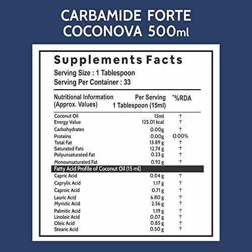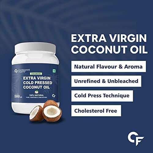 Carbamide Forte 100% Pure Extra Virgin Cold Pressed Coconut Oil for Skin Hair Growth & Cooking 500ml
