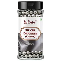 La Casa Premium Silver Dragees | Large(6mm) Sized Pearl Balls Ideal for Cake Decoration & Garnishing | 100g |