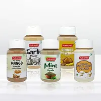 Puramio Sprinkler Jar Combo Pack of Mint Powder Mango (Amchur) Powder Onion Powder Garlic Powder and Ginger Powder [100% Natural] 50g Each (Pack of 5)