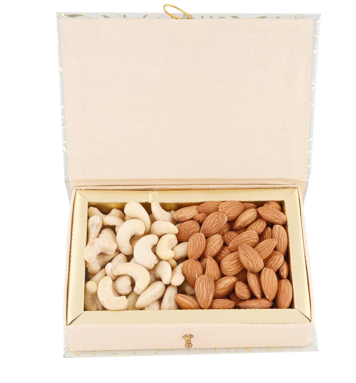 Dry fruits makes an amazing combination of good gift. If you love anyone heartily this is the kind of gift hamper you should look For a good life a healthy mind body and heart are important and all these are achieved with this gift hamper. This Gift Hamper includes: Almond 50g Cashew 50g & 1 Box