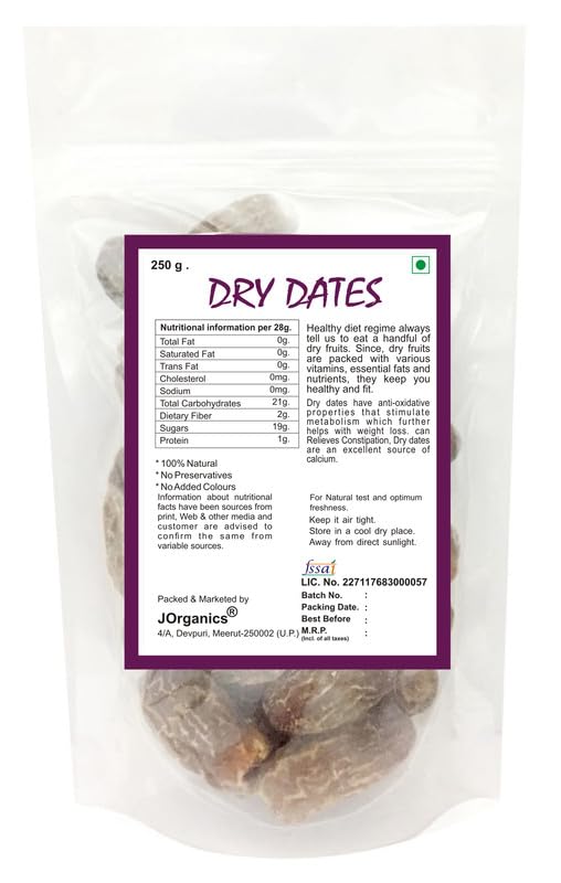JOrganics Dry Date 250gm Dry Fruits Nuts & Seeds | Healthy Natural Snack | Rich in Protein Fiber & Antioxidants | Boost Energy & Immunity | 100% Pure & Fresh