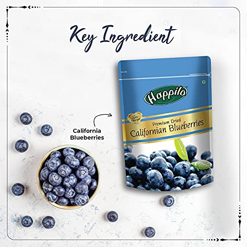 Happilo Premium Dried Californian Blueberries 150 g (Pack of 1)Happilo has travelled the world to get the finest gourmet dry fruits Dried Blueberries are the original candy- nature's candy. They are one of the most nutritious dried fruits in the world. famous for their sweetness so they're a yummy healthy snack. They have double the deliciousness of ordinary dried blueberries. Great for Snacking adding to Cereal Cooking and Baking. High Antioxidants Dietary Fiber No Gluten Non GMO Zero Trans Fat & Zero Cholesterol. Daily need products for a healthy and energetic life. Happilo Zip Lock Pouch with airtight seal to ensure the product is protected and fresh. Quality assured - Happilo products are rigorously tested against the industry's best quality standards.Happilo Premium International Exotic Brazil Nuts 150g Amazon/Brazilian Nut without Shell Healthy Crunchy Protein Snack 150 g (Pack of 1)Happilo has travelled the world to get the finest gourmet dry fruits dried fruits nuts berries and dates. Indulge into the gourmet and grocery world of Happily with awesome natural nuts and dry fruits along with the unique dry fruit mixes fusions and flavoured dry fruits healthy seeds and dried berries specially crafted for your taste and health.
