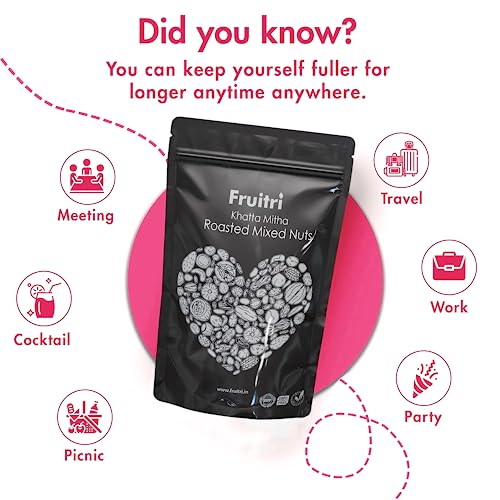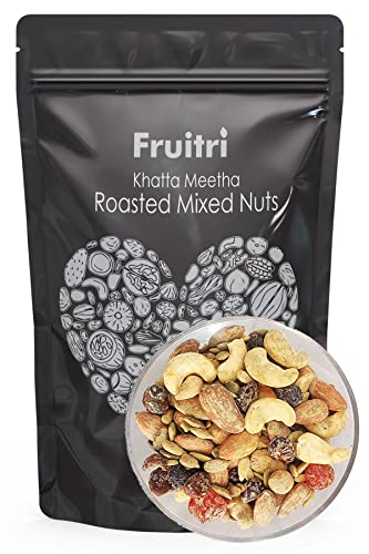 Fruitri Premium Khatta Meetha Roasted Mixed Nuts Trial Mix 400g - Almonds Cashews Sunflower Seeds Pumpkin Seed Flax Seeds Cranberry Black Raisin Cherry (Khatta Mitha)