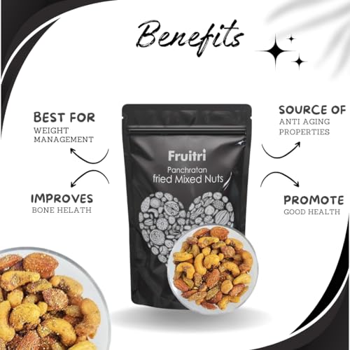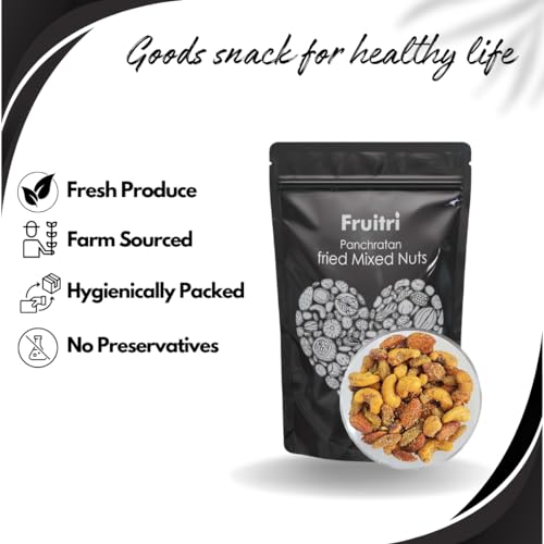 Fruitri Premium Panchratan fried Mixed Nuts 400G Supermix dry fruit - Almonds Big Cashews Pistachios Raisin Pumpkin seeds khas khas Fried Dry fruit mix
