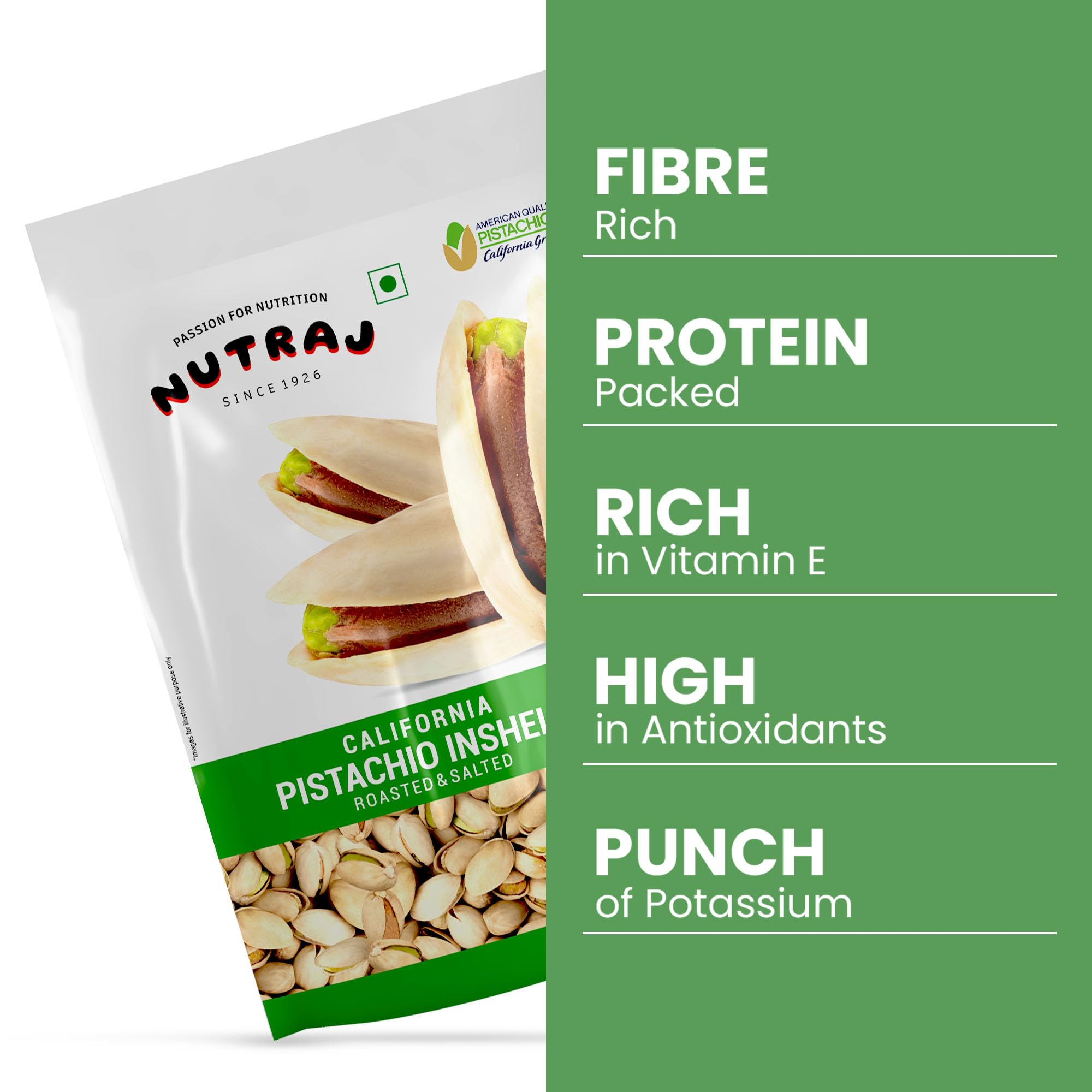 • Guilt-Free Snacking: Nutraj California Roasted and Salted Pistachios make a perfect guilt-free snacking option for weight watchers whether craving a savory snack or looking for an energy booster.