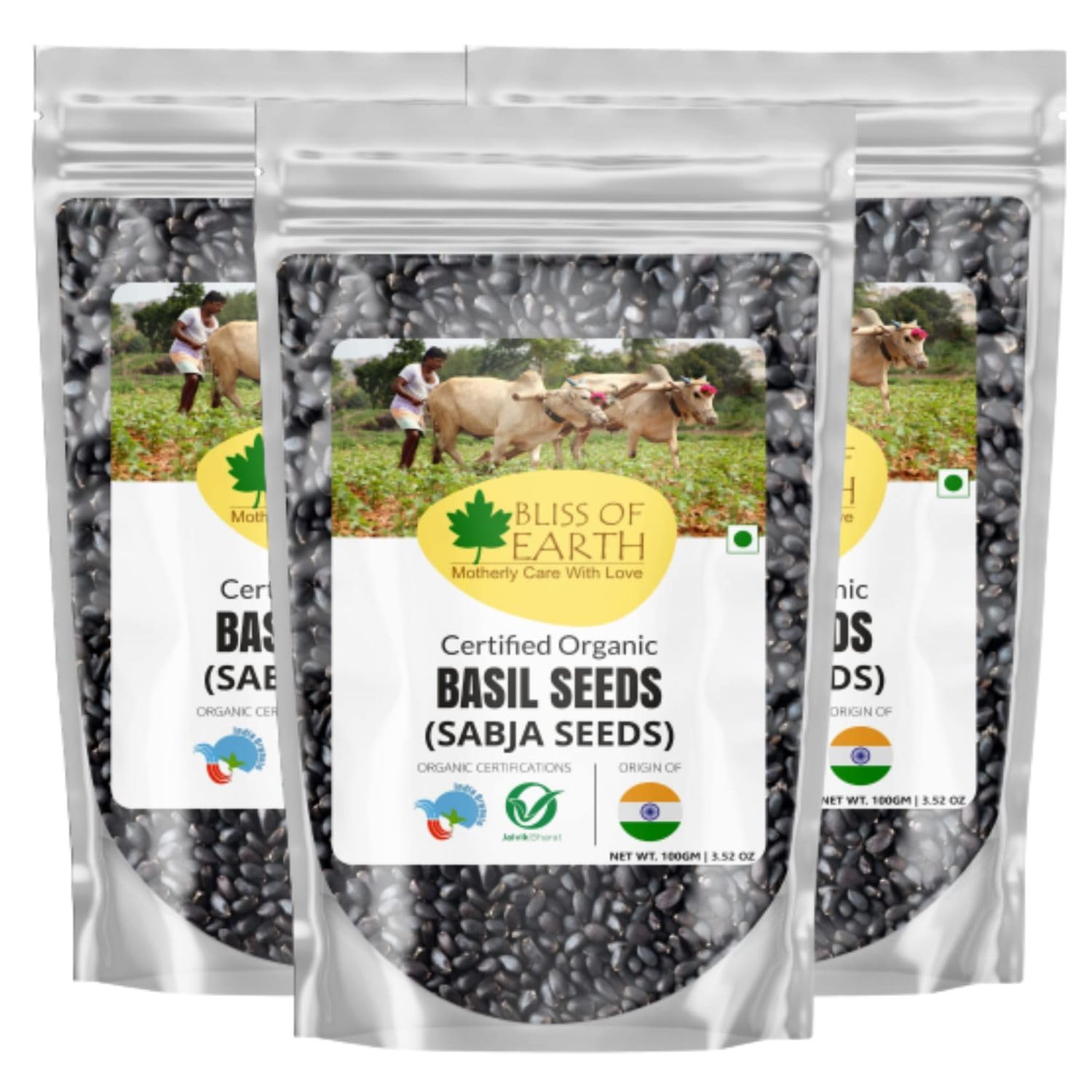 Bliss of Earth Basil Seeds Organic Sabja Seeds, Tukmaria Seeds Fiber & Omega-3 Rich Good for weight loss, Hydration Tiny PowerHouse Seeds 3x100gm