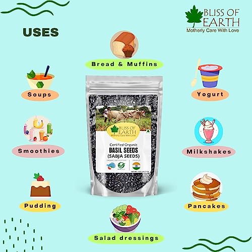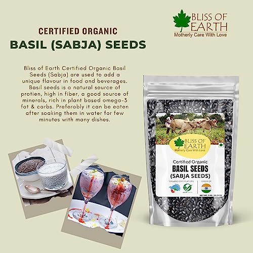 Bliss of Earth Certifed Organic Basil Seeds (Sabja) are used to add a unique flavor in food and beverages. basil seeds is a natural source of protien high in fiber a good source of minerals rich in plant base omega-3 fat & carbs. Preferably it can be eaten after soaking them in water for few minutes with many dishes.