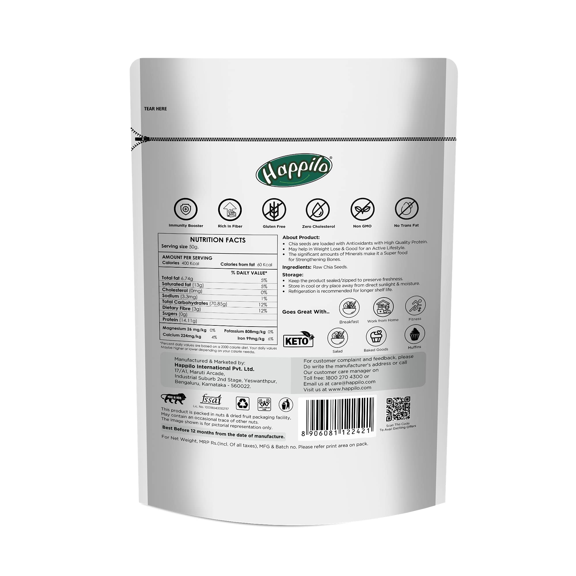 Happilo Premium Authentic Chia Seeds 250g Diet Food for Weight Management Rich in Fiber and Omega 3 Healthy Breakfast SnackA traditionally native to south America organic non-GMO chia seeds pack a powerful superfood punch. These small crunchy gluten-free seeds are a rich source of protein beneficial antioxidants essential omega-3 fatty acids and wholesome fibre. a brand that is committed to improving the of your life Happilo provides food that is packed with the goodness of nature and taste that will keep you wanting for more. With a range of food items across categories like dry fruits nuts seeds berries nut mixes and other healthy items each of our products is not only natural but is also made of whole grains. While we stand strongly for health wherein our products have a clear functional benefit we believe that taste is the most important element when it comes to snacks. We strive to bring the best range of snacks to you. Healthy snacking with Happilo dry fruits nuts seeds berries & nut mixes.Happilo Premium Authentic Flax seeds Roasted 250gHappilo brings to you the world of snacking nuts dry fruits dried fruits berries seeds mixed nuts fusions nut mix and more a brand that is committed to improving the of your life Happilo provides food that is packed with the goodness of nature and taste that will keep you wanting for more. With a range of food items across categories like dry fruits nuts seeds berries nut mixes and other healthy items each of our products is not only natural but is also made of whole grains. While we stand strongly for health wherein our products have a clear functional benefit we believe that taste is the most important element when it comes to snacks. We strive to bring the best range of snacks to you. Healthy snacking with Happilo dry fruits nuts seeds berries & nut mixes.