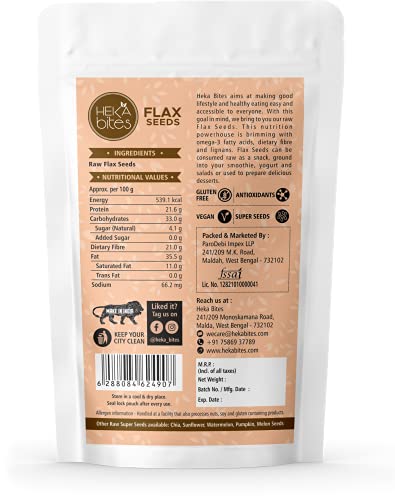 Heka Bites Raw Flax Seeds 250g | Raw Seeds | Source of Omega 3 Fatty Acids Calcium and Iron | Diet Snacks