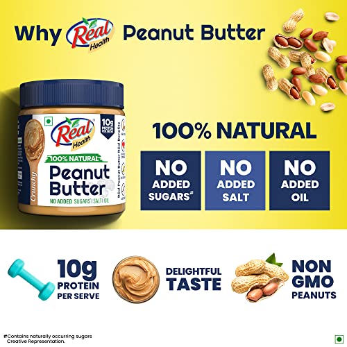 Real Health 100% Natural Peanut Butter is a deliciously crunchy spread made with a single ingredient - BOLD variety peanut handpicked from Saurashtra belt in Gujarat. This peanut butter is as REAL as it gets it has NO added Sugar (unsweetened) Salt & Oil. Packed with goodness of high protein & fiber. Ideal for a quick bread spread pouring into smoothies drizzling onto pancakes dipping fruits or even relishing directly off the spoon!