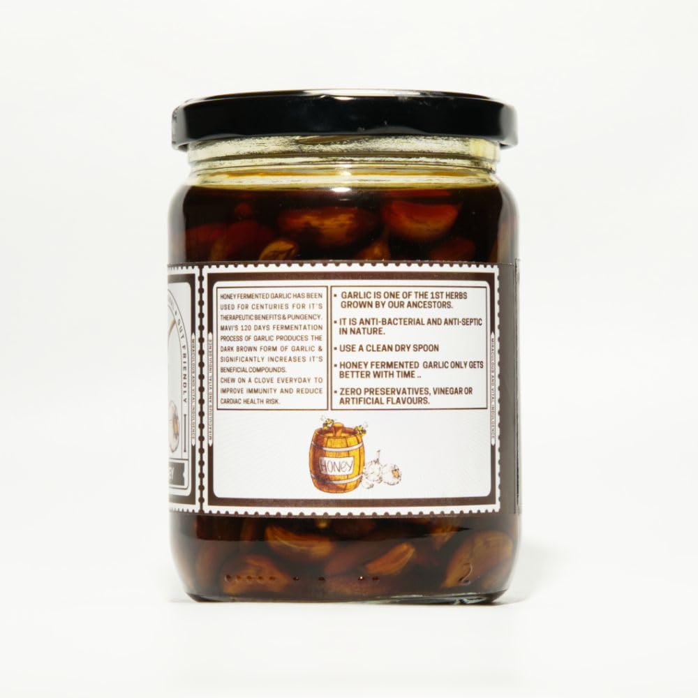 MAVI's Honey Fermented Garlic | Long Ferment | 100% Natural & No Preservatives Artificial Flavour Colour or Sweetener | Gluten Free | Organic Garlic Pods and Wild Raw Honey| 500g | Pack of 1