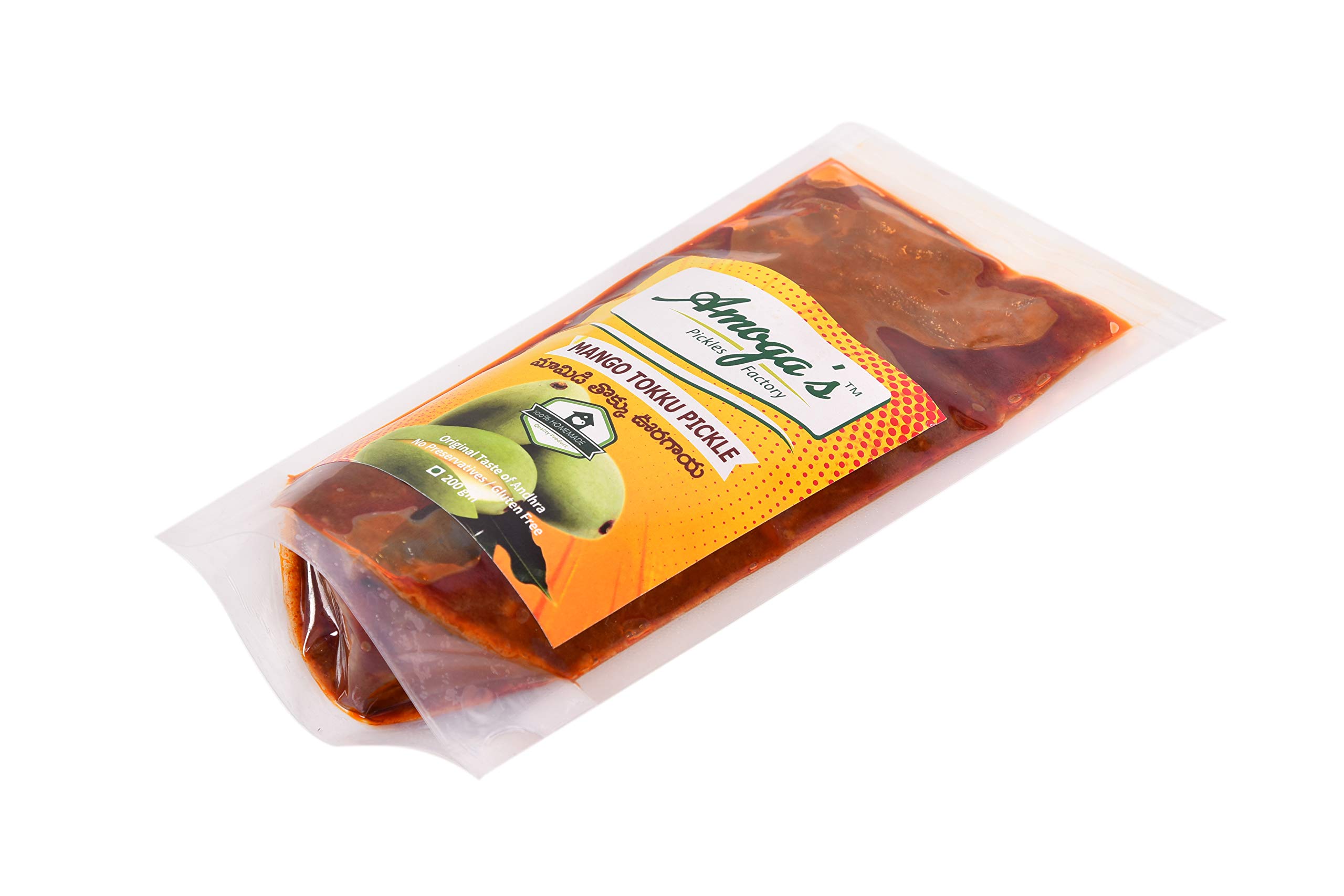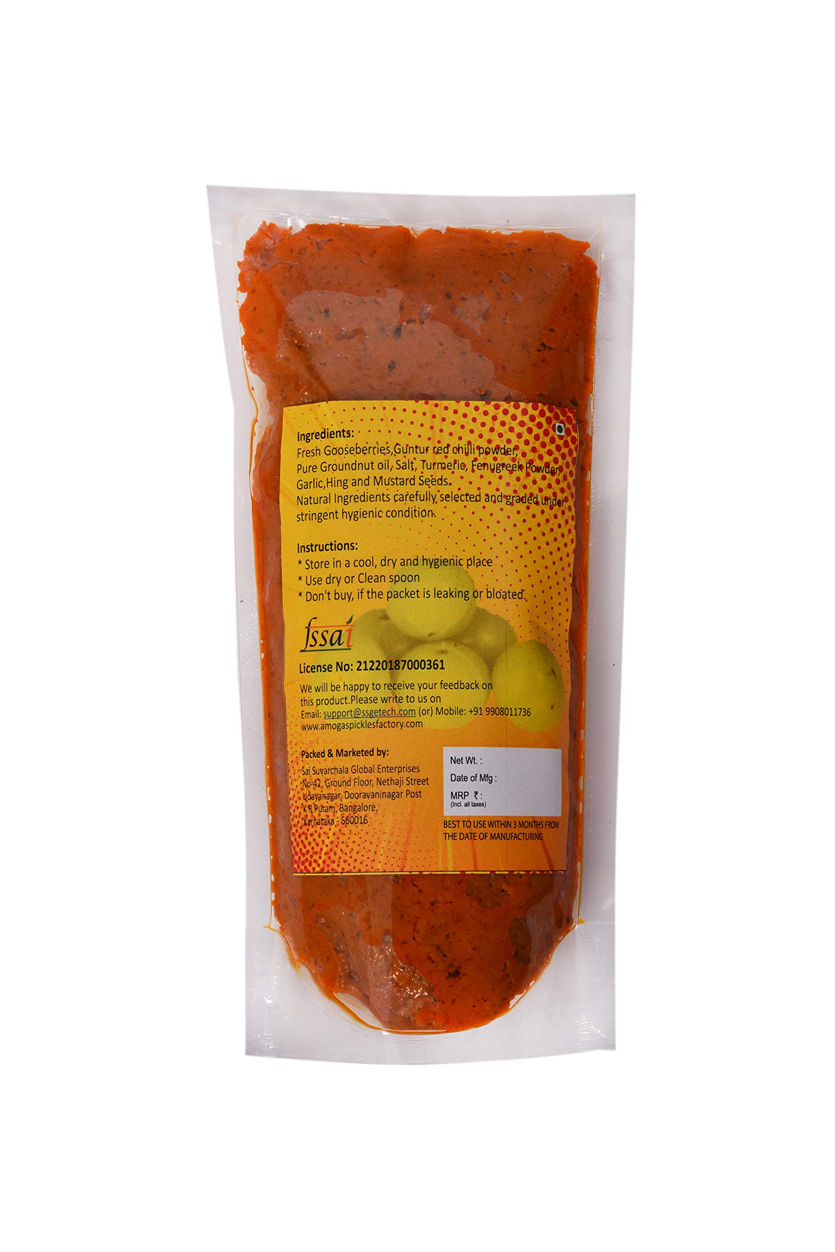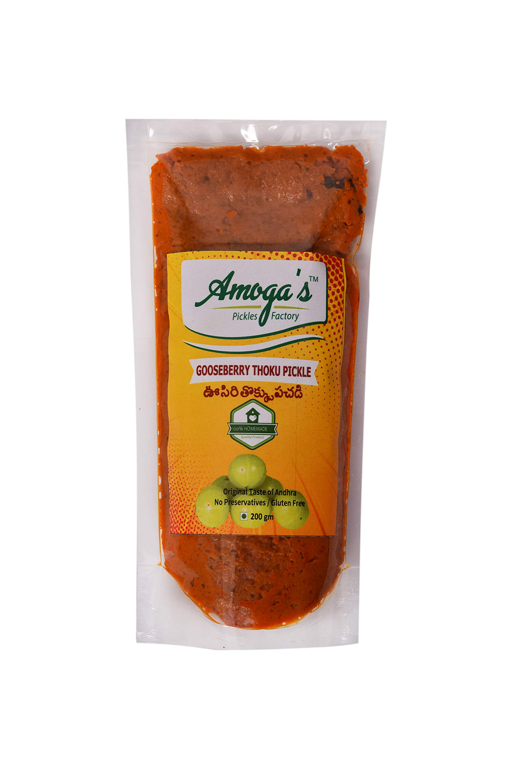 Amoga's present Andhra's Gooseberry / Usirikaya Thokku Pickle available in mini pack. Eat Healthy Live Healthy.Pickle makes a great accompaniment for idli/dosa/roti/sandwich or rice.This is another unique and essential delicacy from Andhraâs culinary tradition.Indian gooseberry is a tree that grows in India the Middle East and some southeast Asian countries. Indian gooseberry has been used in Ayurvedic medicine for thousands of years. Today people still use the fruit of the tree to make medicine.Gooseberries were rich in Vitamin C. Authentic Traditional South Indian PickleMango Thokku pickle is one of the most commonly made condiment in indian homes. Mango Thokku is a popular pickle variety from andhra cuisine a cuisine well-known for its hot & spicy foods