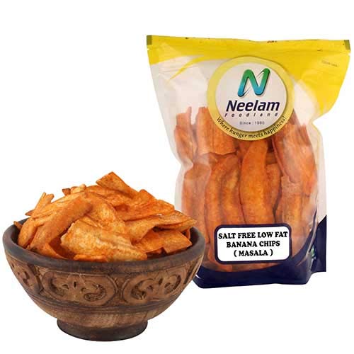 • Neelam Foodland Crispy and delicious Salt-Free Low Fat Masala Banana Chips made with the best quality ingredients